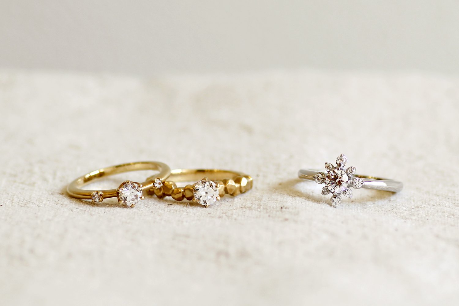 結婚指輪や婚約指輪などのブライダルリングや、ファッションジュエリー(リング・ペンダント・ピアス・イヤリング・ブローチなど)の制作、お手持ちのジュエリーのリフォームやお修理など、ジュエリーのことでしたら何でもお気軽にご相談くださいませ。