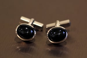 海外で購入されたプレゼントのカフリンクスの石留部分が破損してしまったためご相談をいただいたのですが、しっかりとした作りのものにするため留められていた宝石のみを使い、フルオーダーでの制作となりました。