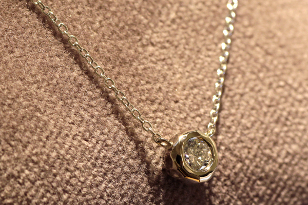 先日制作させていただいたペンダントのご紹介です。 お手持ちの立爪エンゲージリングを娘さんへのプレゼントするためペンダントへのリフォームいたしました。