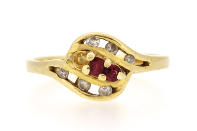 korutでは、オーダーいただいたジュエリーの制作以外にも、 お手持ちのジュエリーのお修理やリングのサイズ直しなども承っております。 例えば、こちら。 爪が折れて、赤い石が一つなくなってしまっていました。