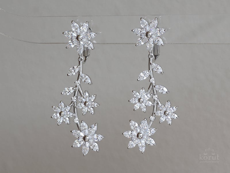 今回ご紹介するのは、A様からのご依頼でお作りしたイヤリングです。 ご自身のご結婚式の際に着けるイヤリングを、とのご相談でした。