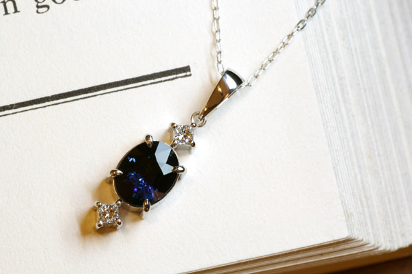 今日は、急に冷え込みましたね。 空気が変わると、街の色も変わって見えます。 さて今日は、先日納品をさせていただきましたペンダントをご紹介します。 ブルーサファイアと、お手持ちのペンダントに留められている石を使ってシンプルなものを、とのご要望。 いくつかのデザインをご提案し、その中からオーダーしてくださいました。